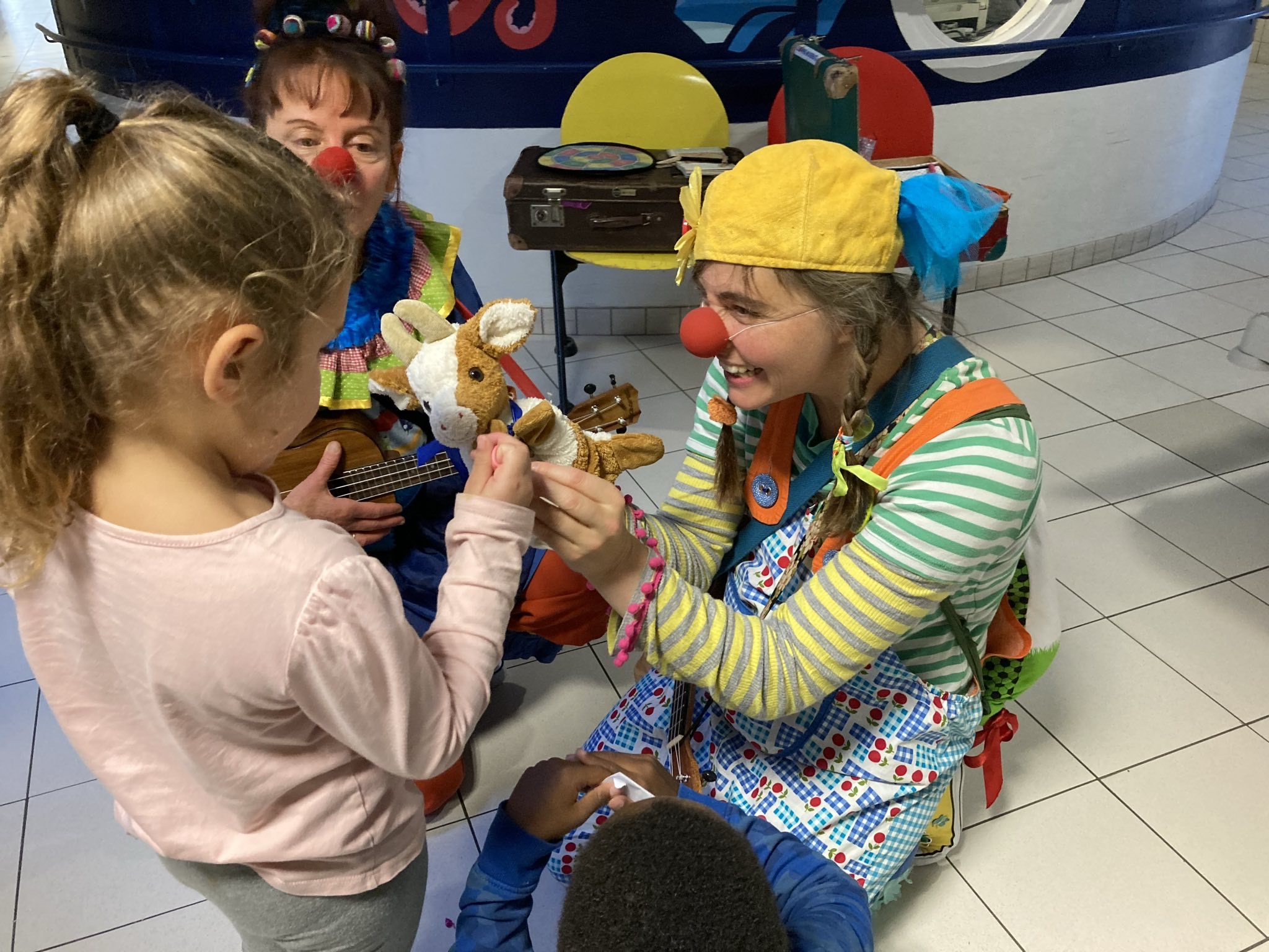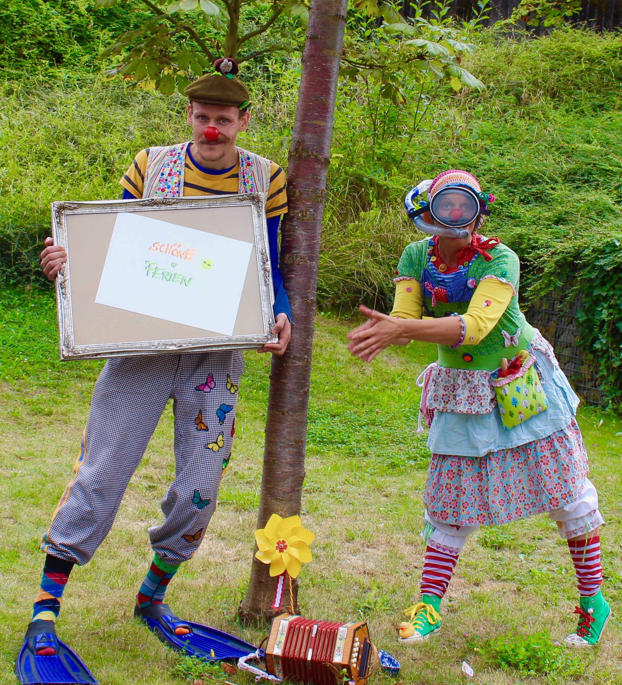 Unsere Clowns Kiwi und Ella Capella begeisterten die vielen Kinder mit ihrem lustigem Schlamassel, begleiteten musikalisch die Laternenlieder mit Gartenschlauchtrompeten, haben die tollen Laternen der Kinder bestaunt und durften jede Menge Sterne und Herzchen auf die Laternen kleben…