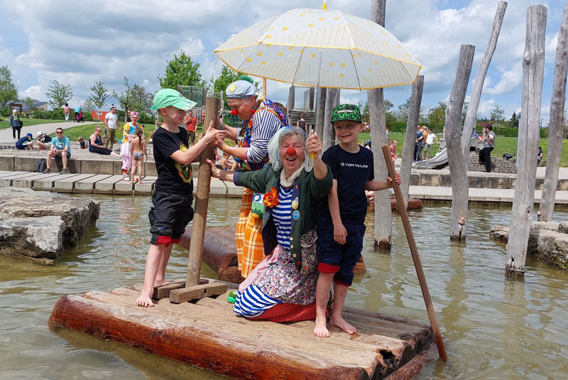 Clowns im Dienst e.V. ist seit 2008 Mitglied im Dachverband Clowns in Medizin und Pflege Deutschland e.V. Einmal jährlich organisieren die dem Dachverband angeschlossenen Vereine eine gemeinsame Aktion in ihrer jeweiligen Region, um neben der eigenen Arbeit auch auf die Arbeit des Dachverbands hinzuweisen. Wir waren im Himmelsgarten in Schwäbisch Gmünd. Viele Familien mit Kindern besuchten unseren Infostand. Riesenseifenblasen, Floßfahrten mit Clowns auf dem kleinen Teich oder die kleinen Geschenke, die die Kinder erhielten, wenn Sie eine Clownaufgabe gelöst hatten, machten allen viel Freude.